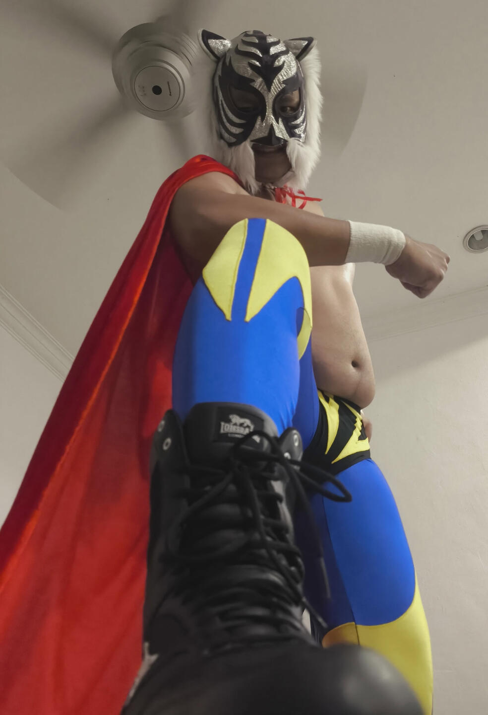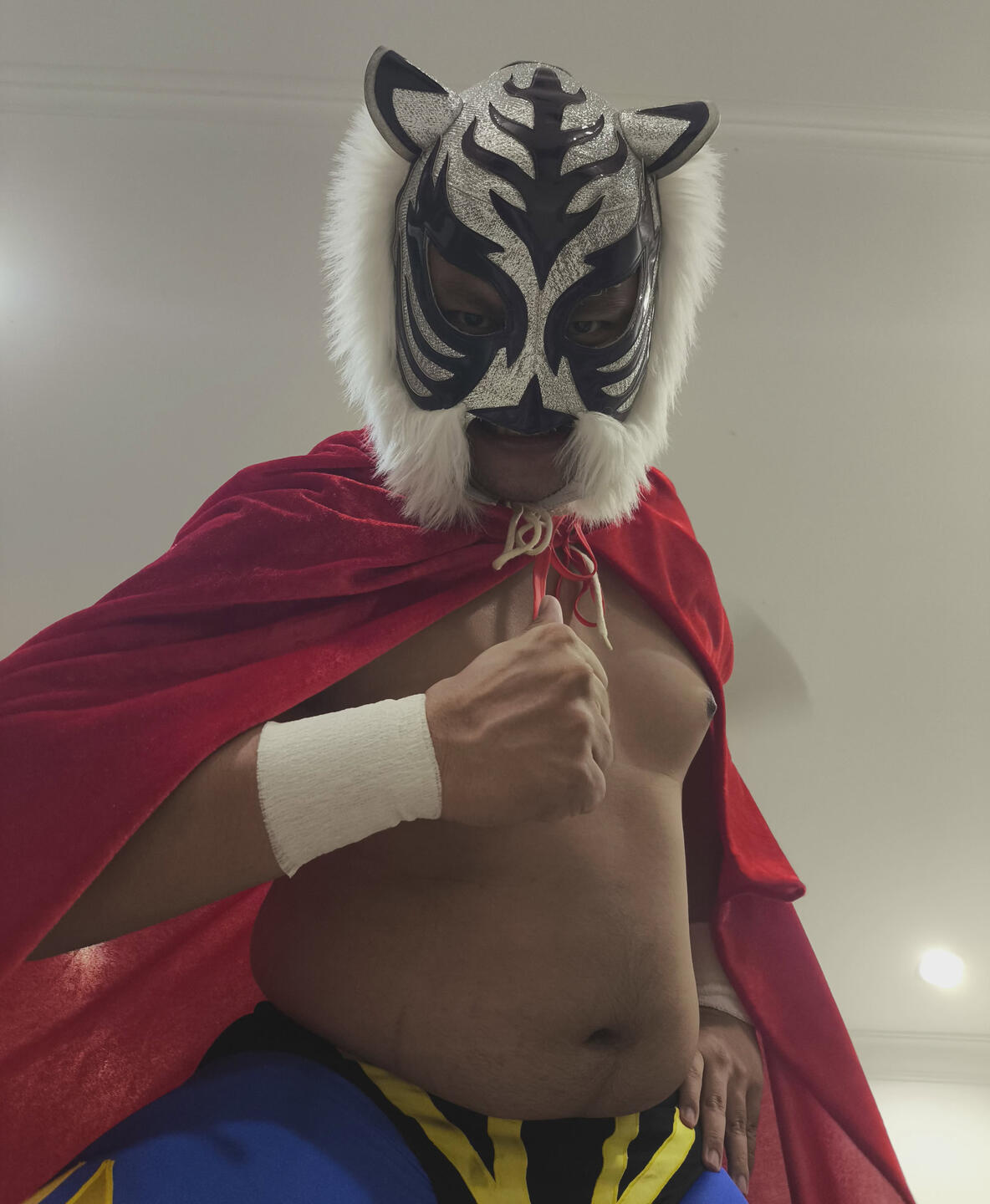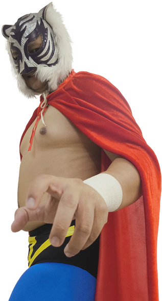 hmmm... i mean i could go classic luchador too, but i like tigers! we earn our stripes. and we're fuzzy, mroww. 🐯
